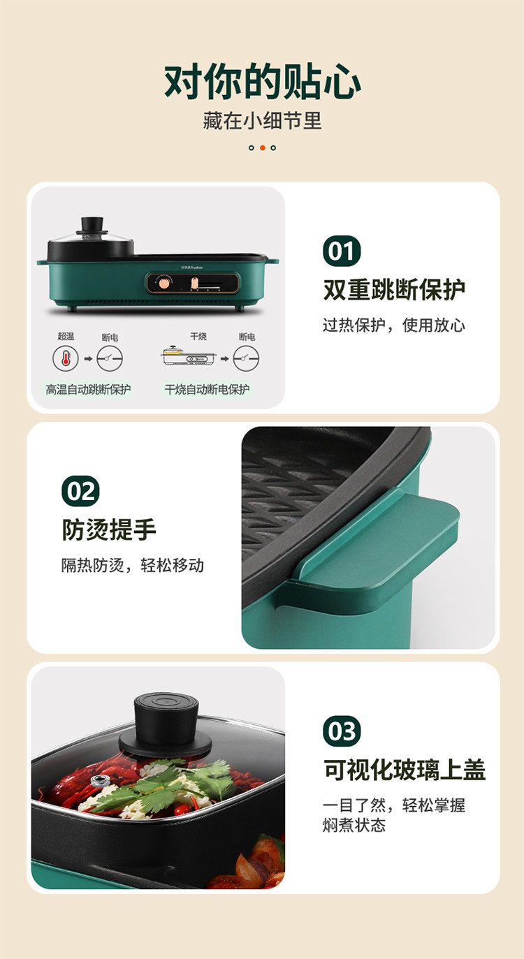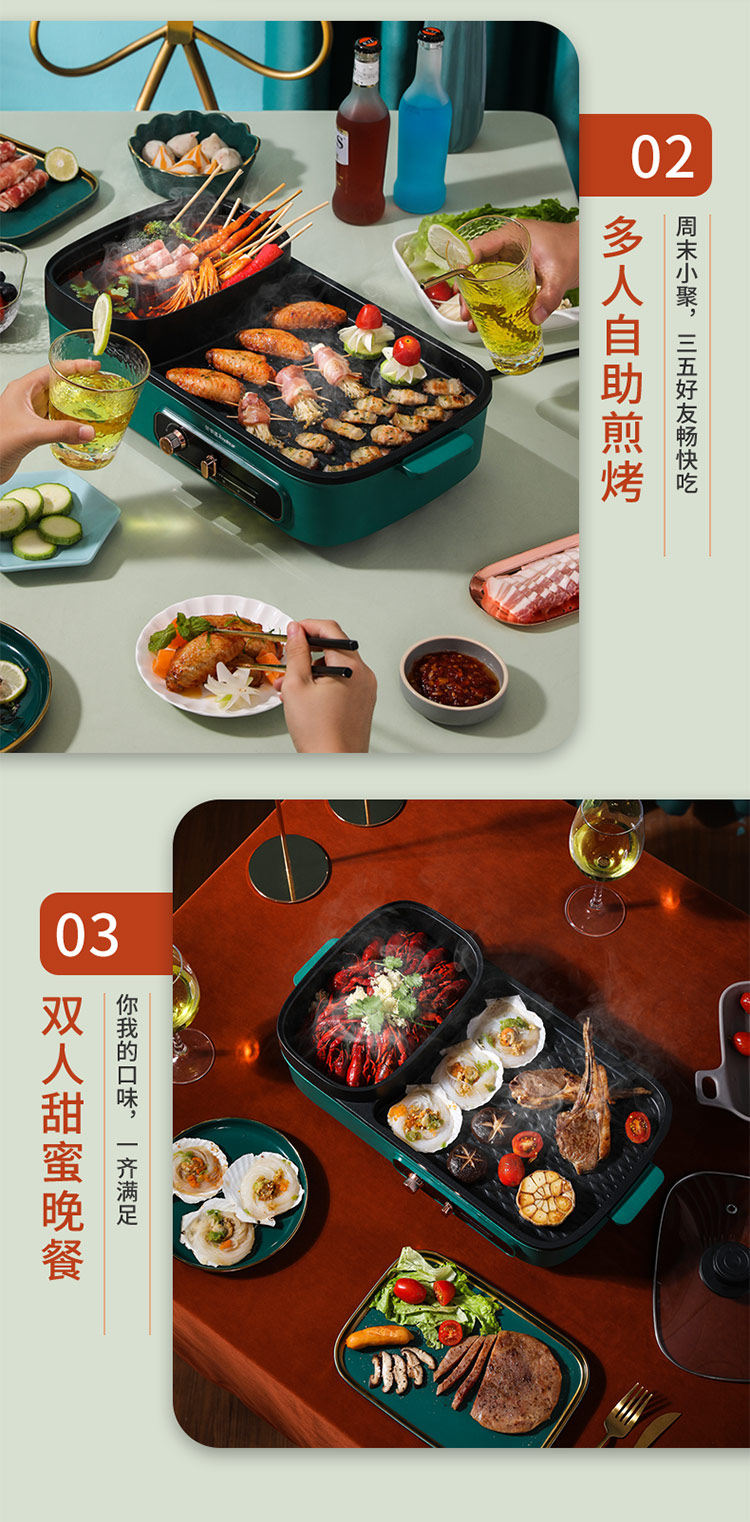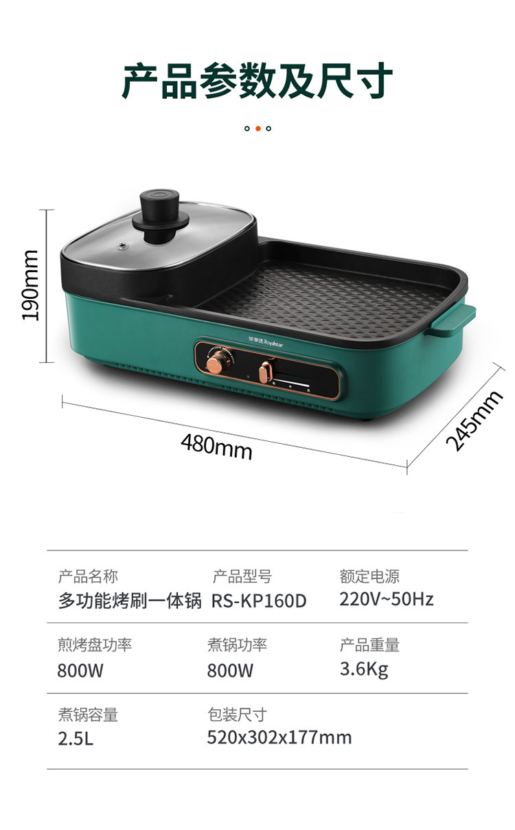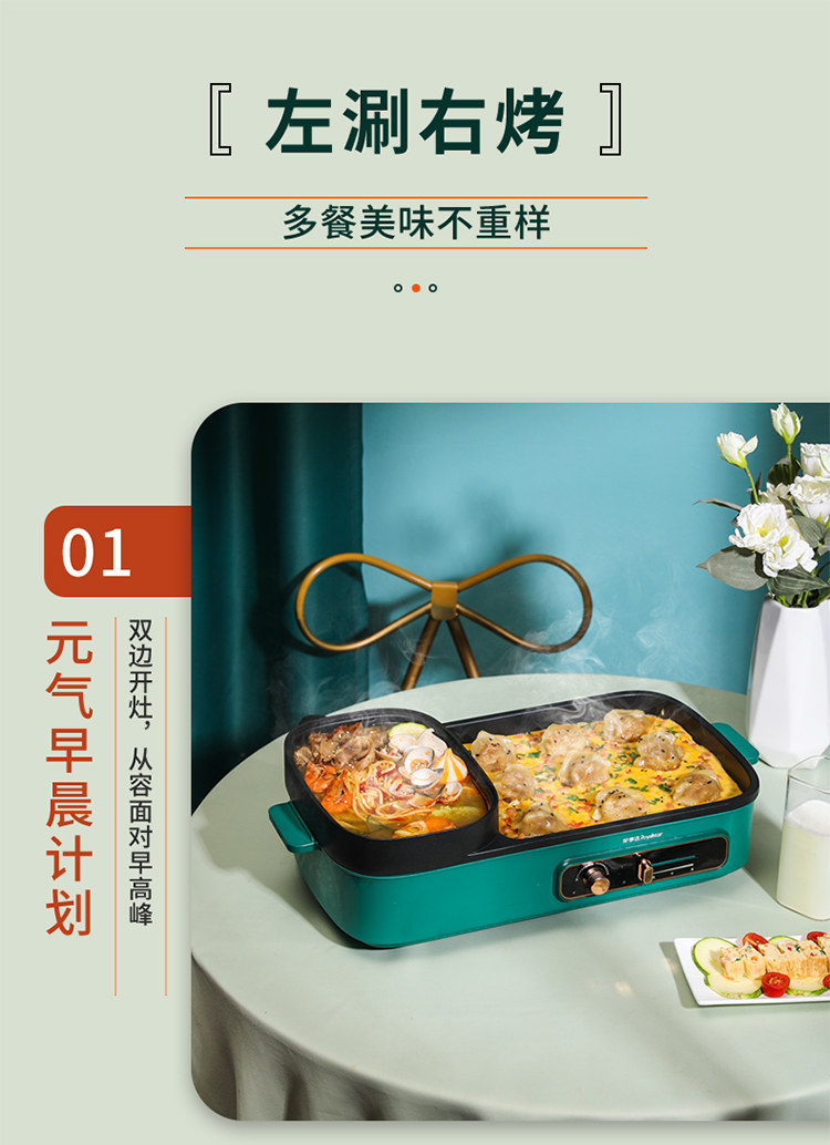 [Taobao] Электрический гриль Royalstar, бытовая бездымная плита для барбекю, многофункциональная гриля Шабу-сябу Шабу-Шабу горшок два в одном