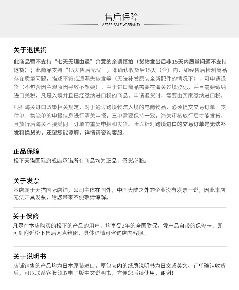 Продавец:Panasonic松下海外旗舰店