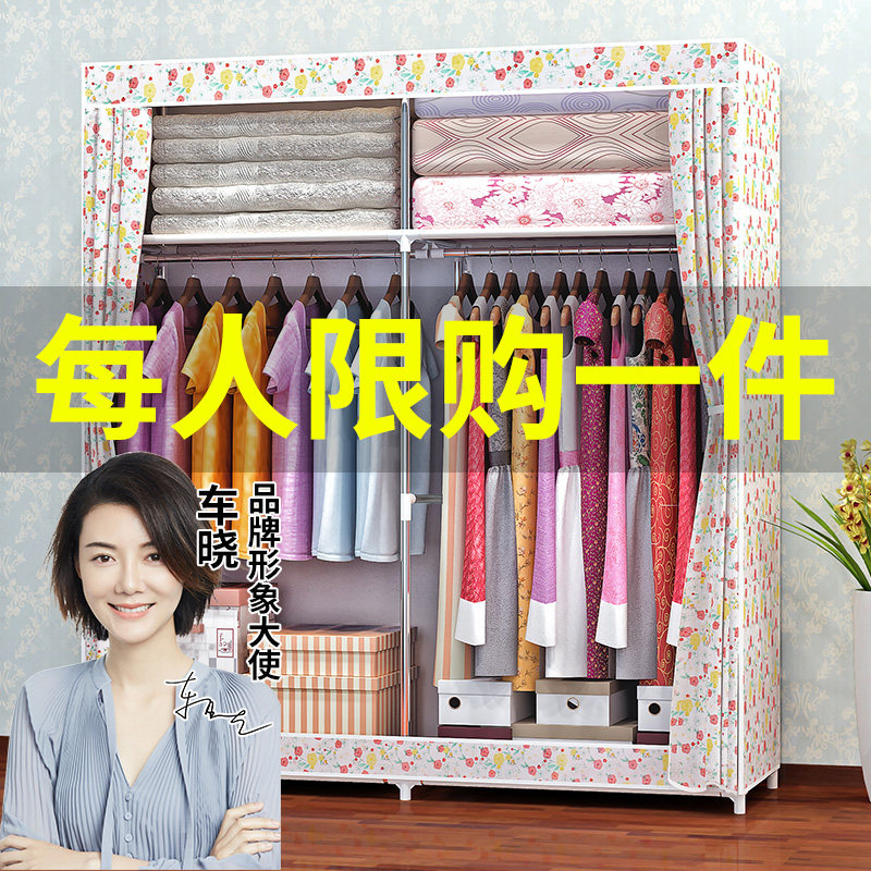 Простой шкаф ткань шкаф стальная труба жирная и утолщенная шкаф для хранения домашняя спальня подвесная гардероб узел