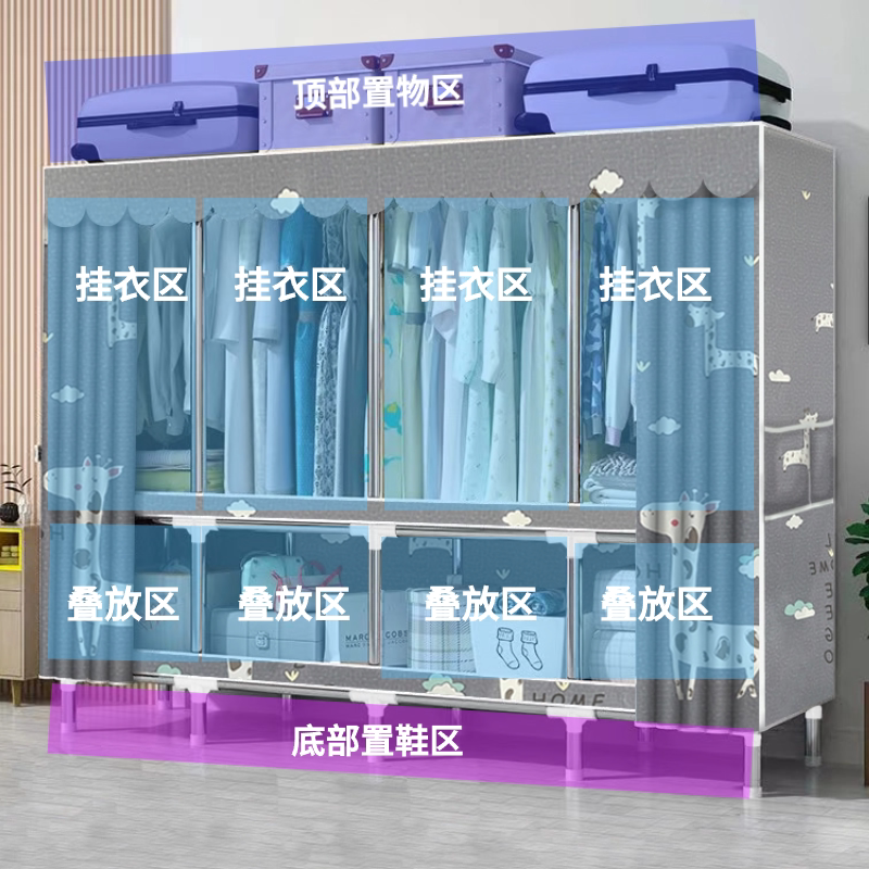 Простой тканевый гардероб мебель спальни прокат дом прочный, долговечная экономика, снос и погрузка гардеробного шкафа Одинокий двойной шкаф