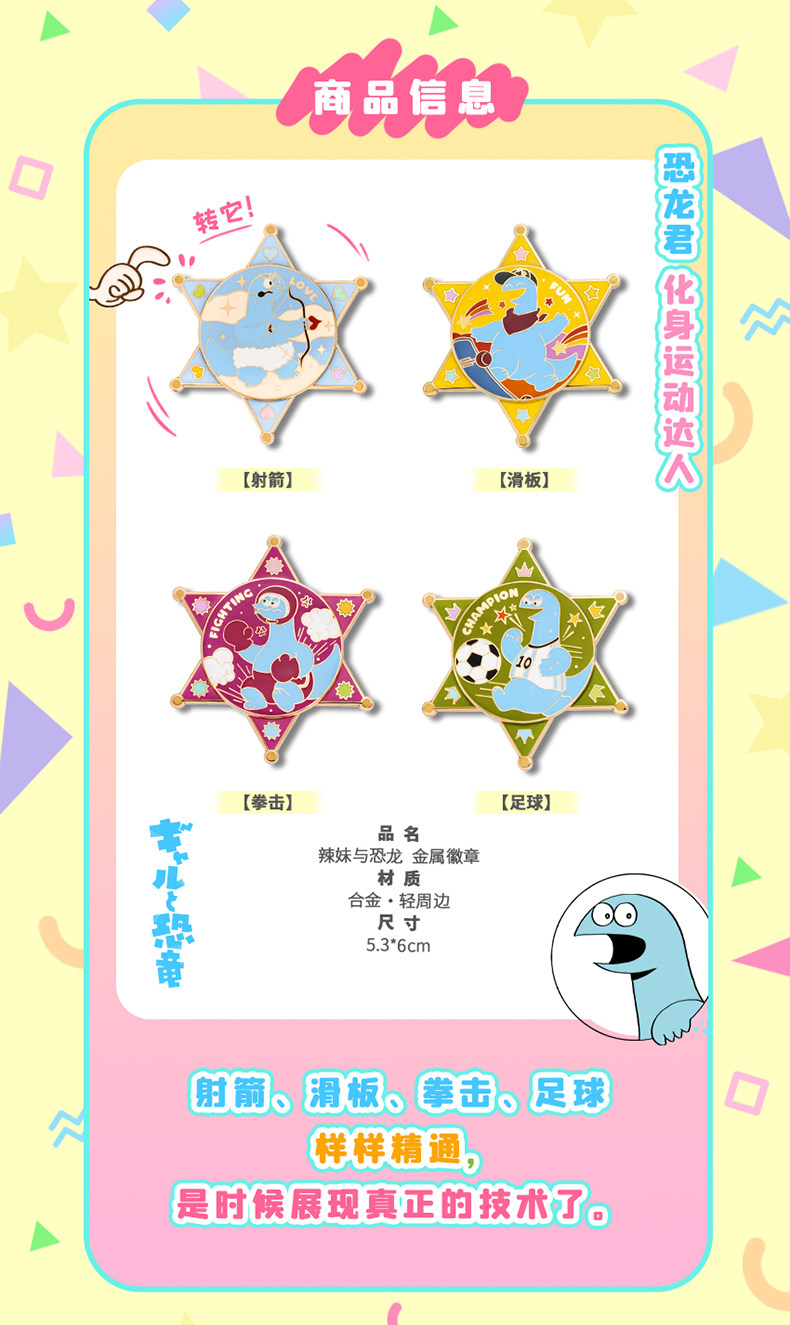 Динозавр, подвижный металлический значок, (в наличии на складе)