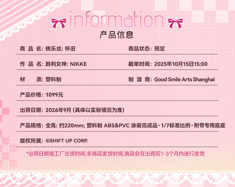 [Предпродажный депозит GSC] Стандартный масштаб 1/7 Дороти: Ностальгия. Богиня победы: NIKKE В комплект входит бонус.