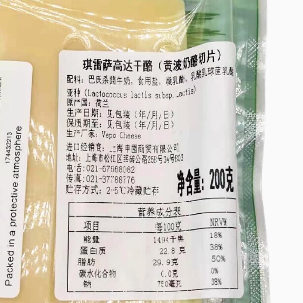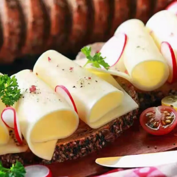 Импортированный из Нидерландов готовый к употреблению нарезанный сыр желтой волны, сыр гауда, ломтики сыра, голландский сыр гауда.