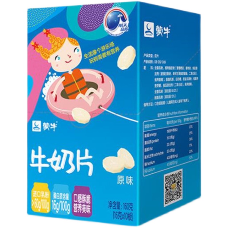 蒙牛 Оригинальные таблетки для молока с высоким содержанием кальциум 144 г внутренней Монголии Специальные детские закуски для сухого молока 10 тарелок/коробка