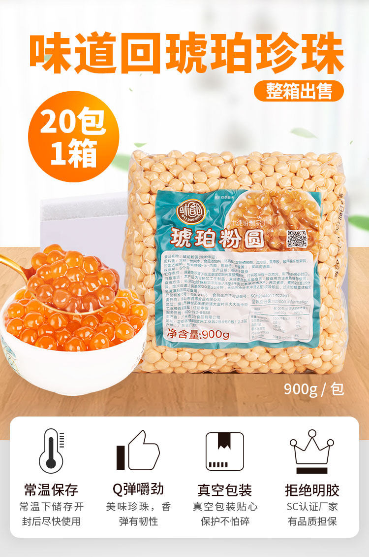 Вся коробка аромата обратно к янтарному жемчужному порошке 900G*20 пакетов коммерческого золотого жемчужного чая для чая Специальное жемчуг