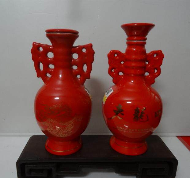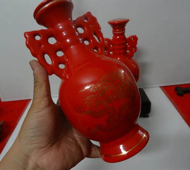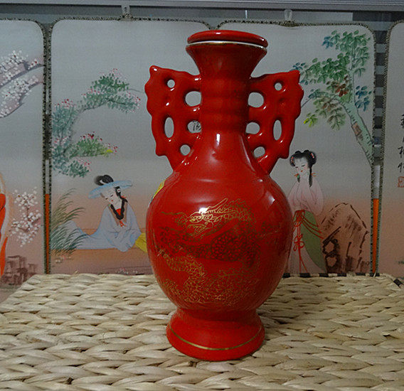 Красная фарфоровая бутылка вина винтаж с двойным ухом(Есть две формы крышки. Для деталей визуальное ощущение в основном одинаковое. Продавец также обнаружил его позже.