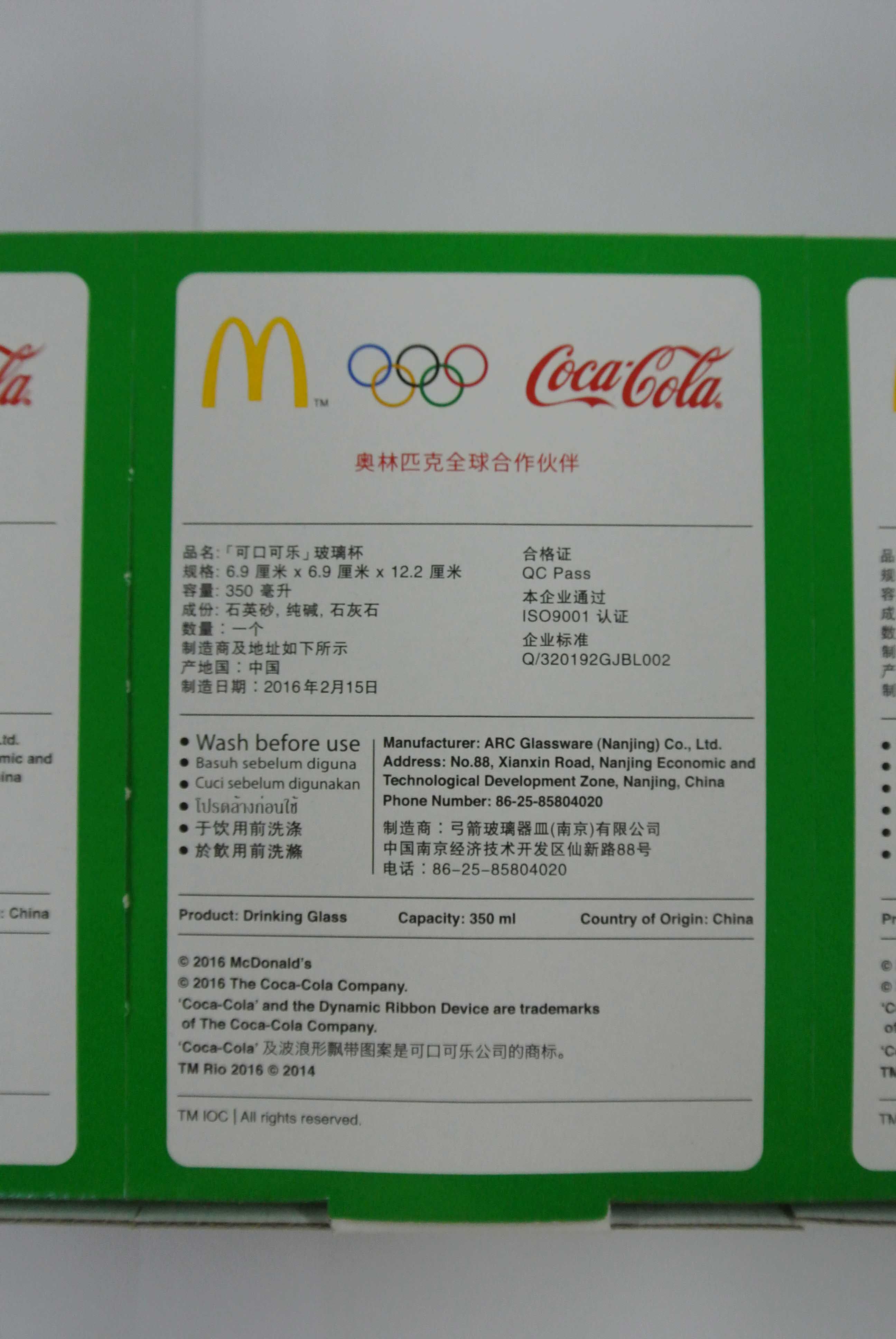 В августе 2016 года McDonald's запустил The Rio Olympics Glass, набор из 6 моделей