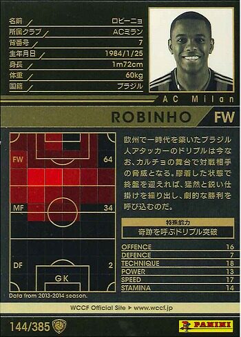 Японская версия звездной карты WCCF 13-14 White Card AC Milan Robinho Brazil
