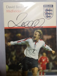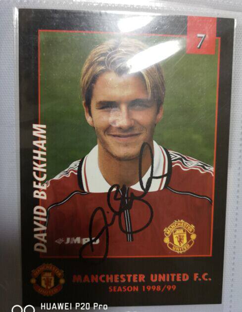 Бекхэм подписывает официальную открытку звездной карты Манчестер Юнайтед