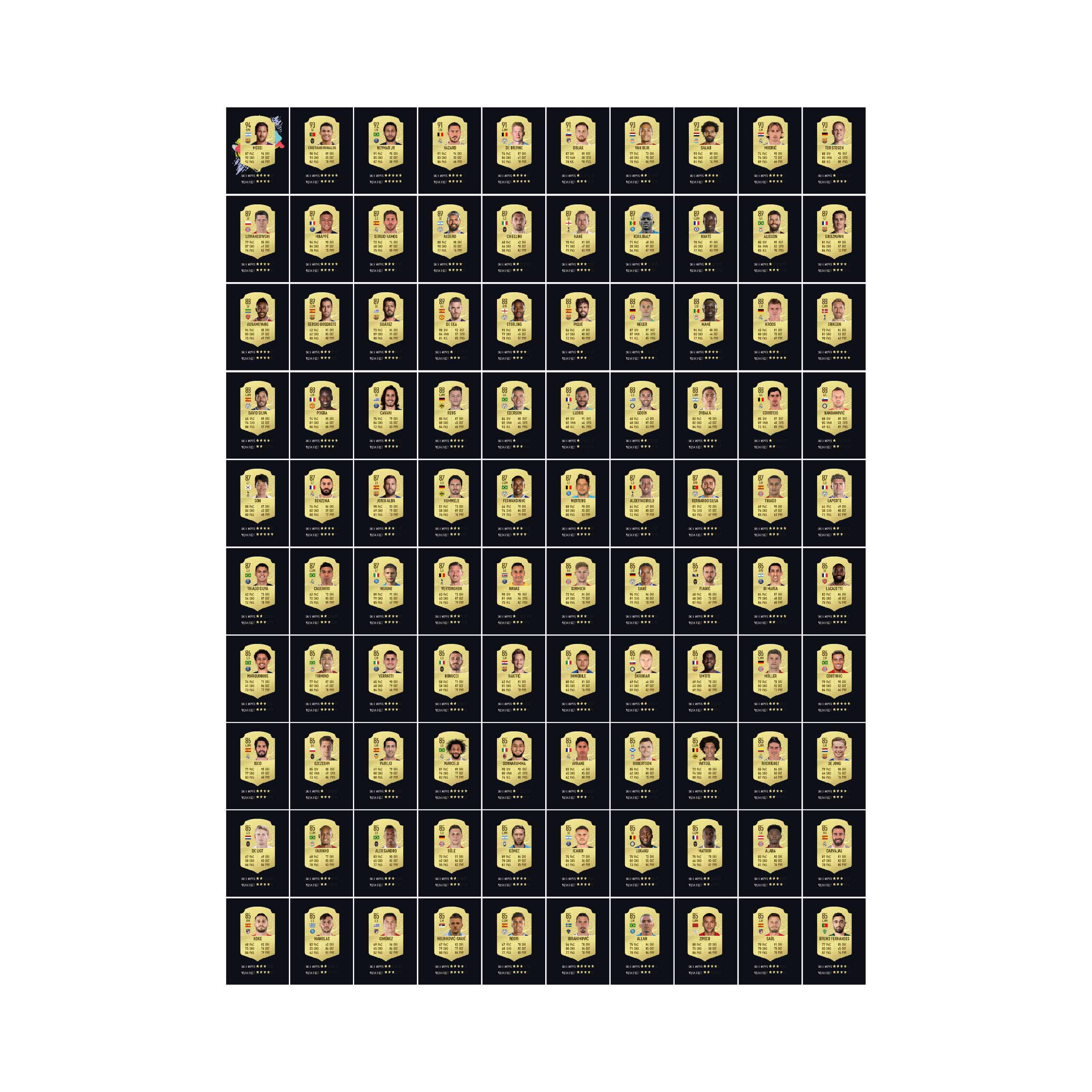 Звездная карта 2020EA FIFA Top 100 Star Messi C Roshimal Salah Azal Полный набор из 100 фотографий