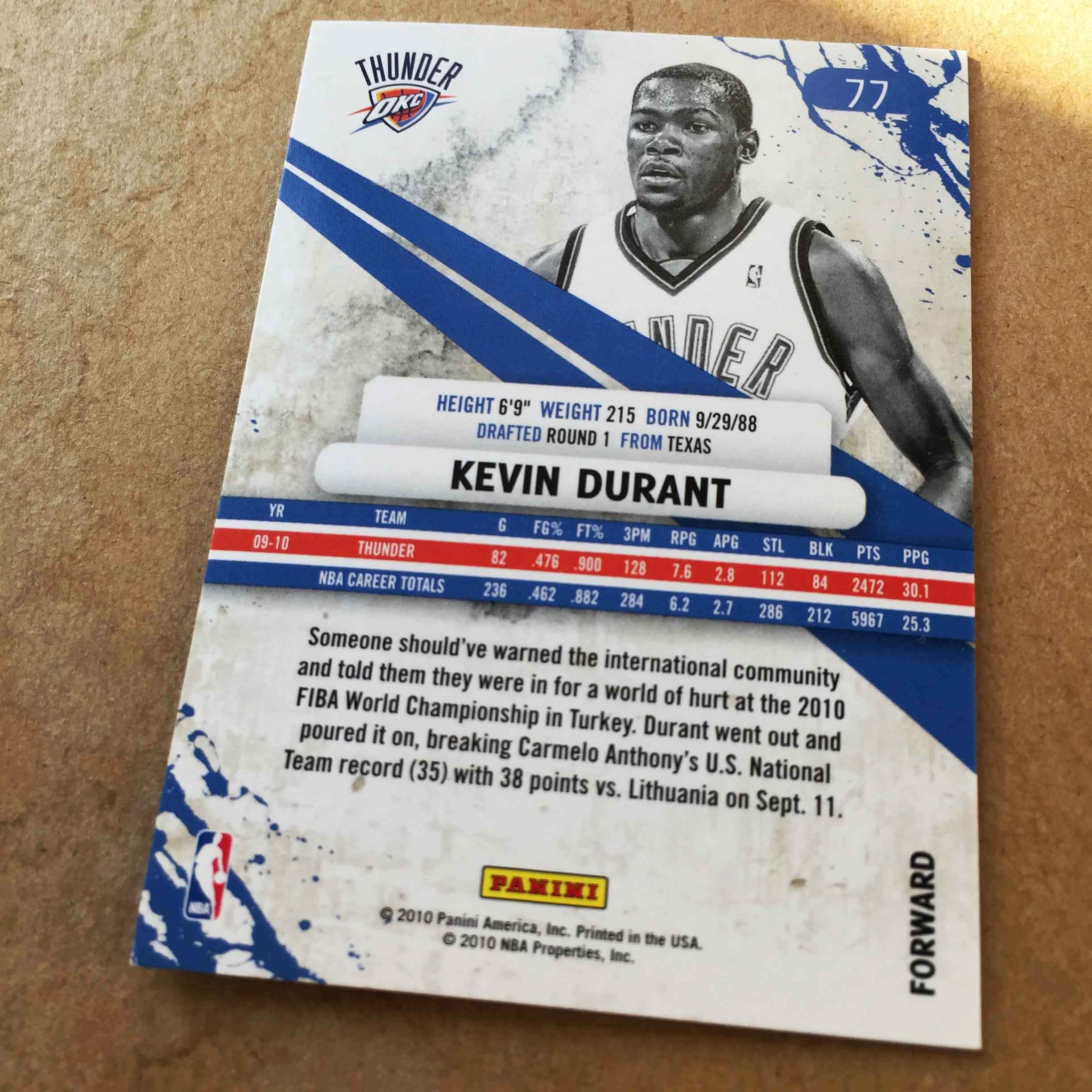 ★ Кевин Дюрант Дюрант забил впервые ★ 10 Star Card Panini RS 77