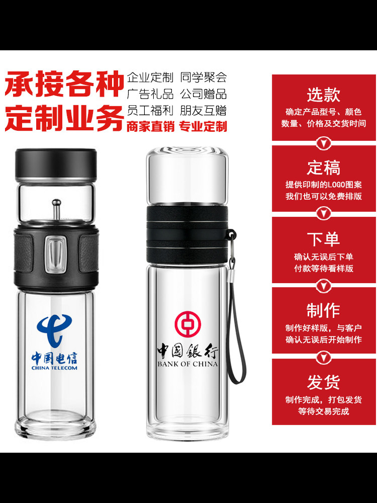 Чайная двойная стеклянная чашка оптовая реклама Cust Cust Logo Printing Tea Cup для открытия среднего фестиваля подарок фестиваля