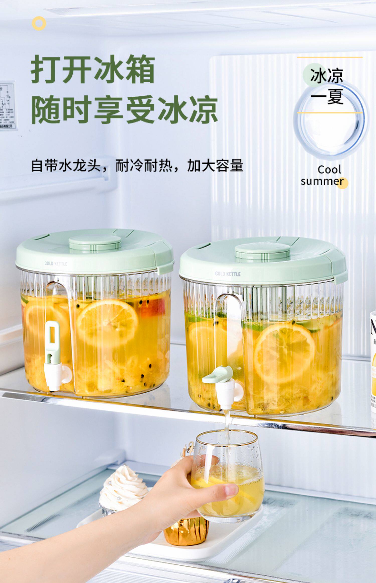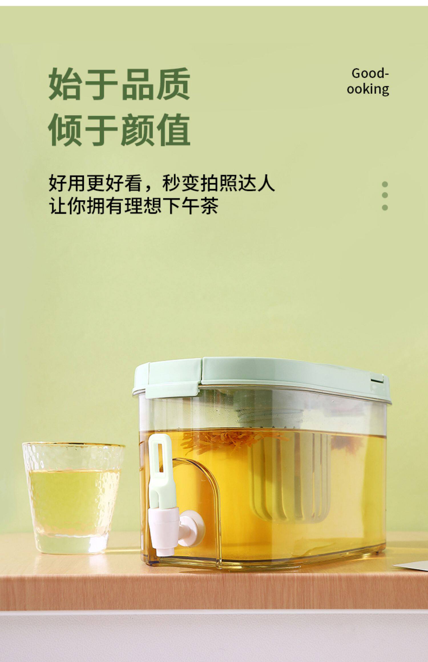 - [Зеленый] 4L круглое холодный чайник, утечка чая с чаем,