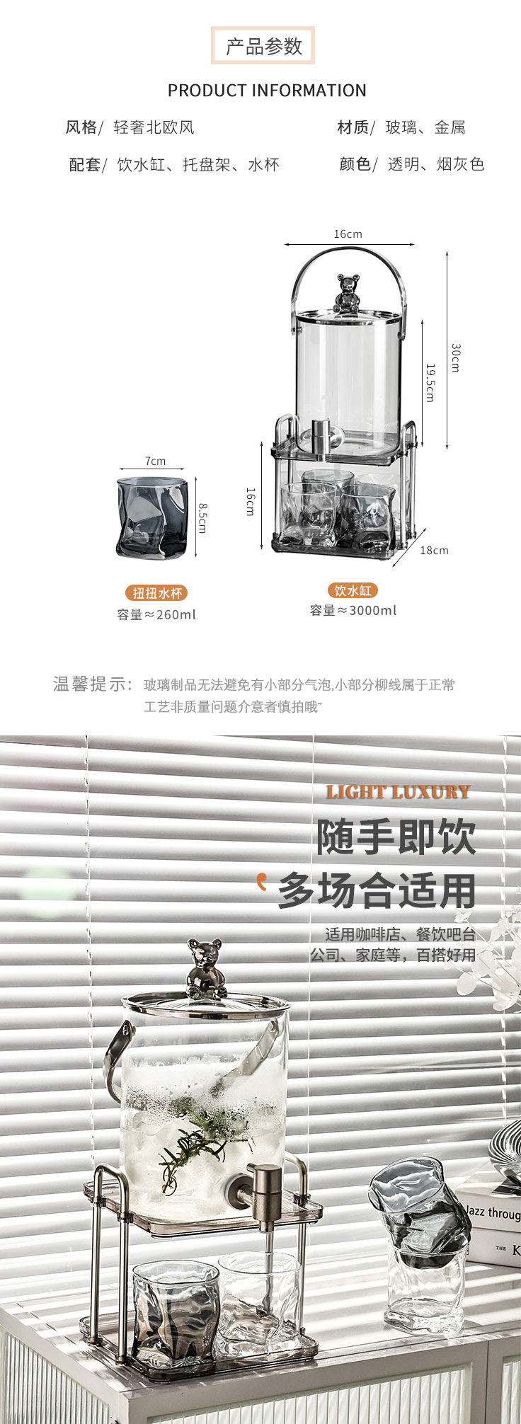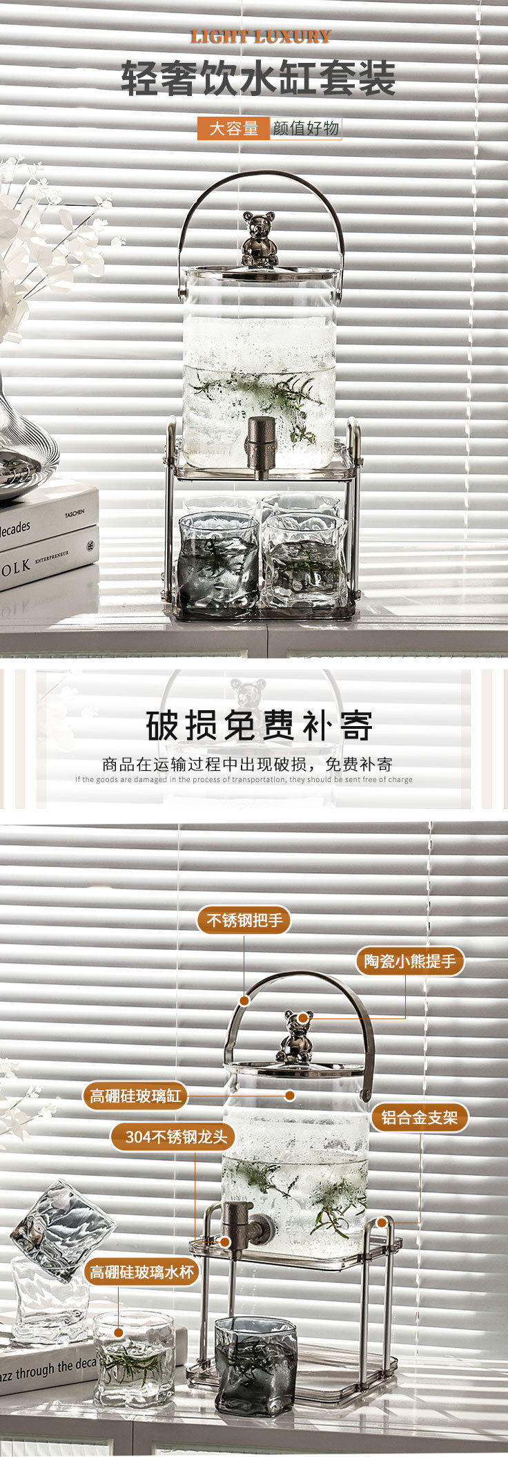 Высокоэлементный стеклянный холодный чайник с краном для холодного чайника Домашний лимонад кислотный суп из сливы пузырьковые фрукты чай холодный напиток ведро