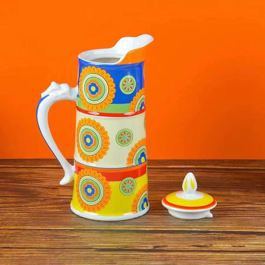 Креативный керамический вместительный и большой этнический заварочный чайник, принт, подарок на день рождения