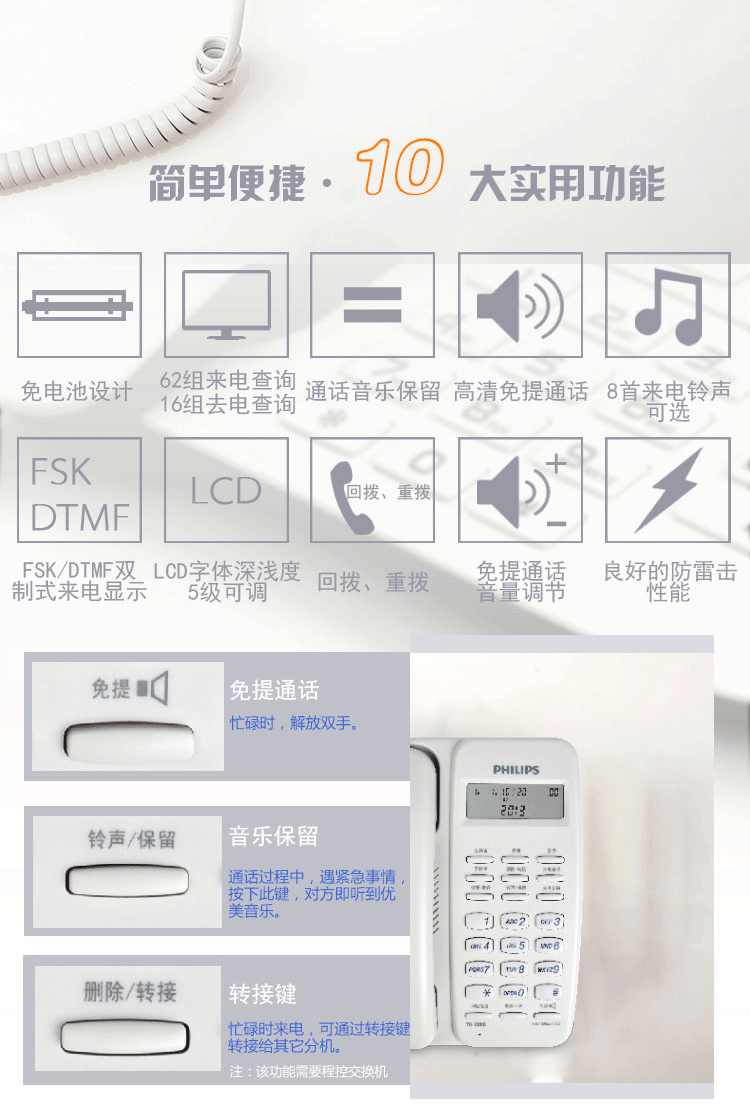 Philips (Philips) TD-2808 Caller ID Home Office Office Telephone стационарная линия подлинная