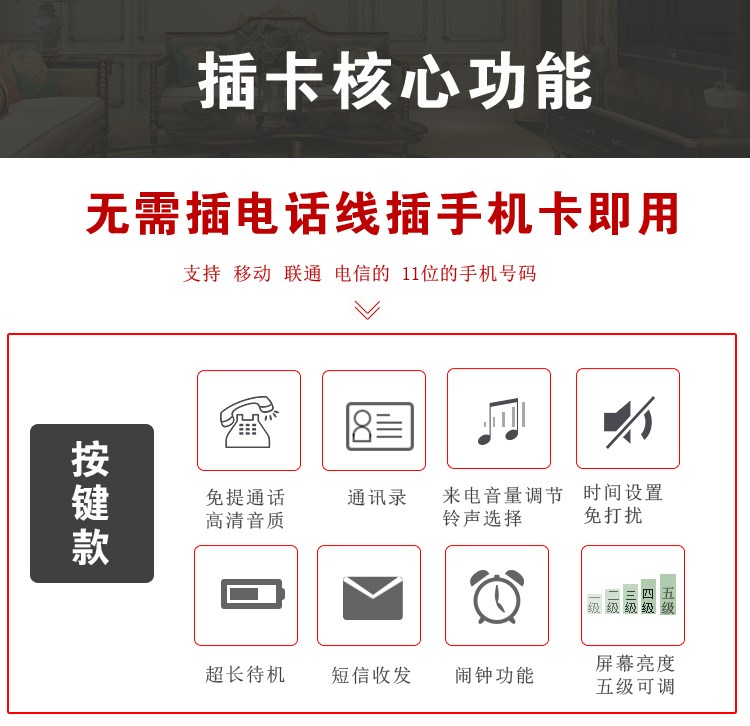 | Цвет: | Обычная версия (цвет красного дерева), Подготовка подсветки (цвет красного дерева), Безусловная версия (механическая шуанлинга) цвет красного дерева, Беспроводная версия обновления мобильных карт Unicom, Беспроводная телекомпонентная карта мобильного телефона Махогар Цвет, Подготовка подсветки (цвет кофе), Версия -версия (механический рингтон) кофе, Беспроводная Unicom Mobile Phone Card Обновляется версия кофе Color, Беспроводная телекоммуникационная карта для мобильного телефона |