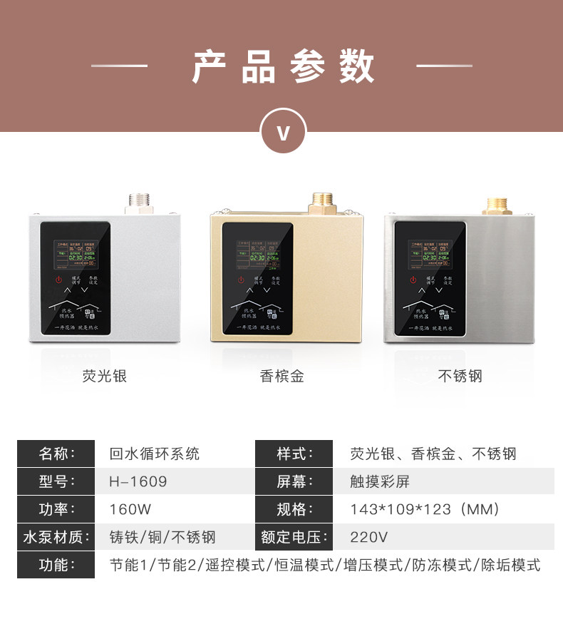Housewater Возвращение дома Энергия Энергия Энергия Тепловая система циркуляции полностью автоматическая насос с удаленным насосом из нержавеющей стали Дистанционное управление H-1609 H-1609