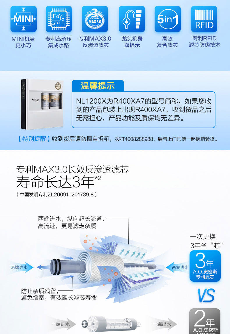 AO Smith R400XA7 Очистка воды Окружающая обратное фильтр осмос.