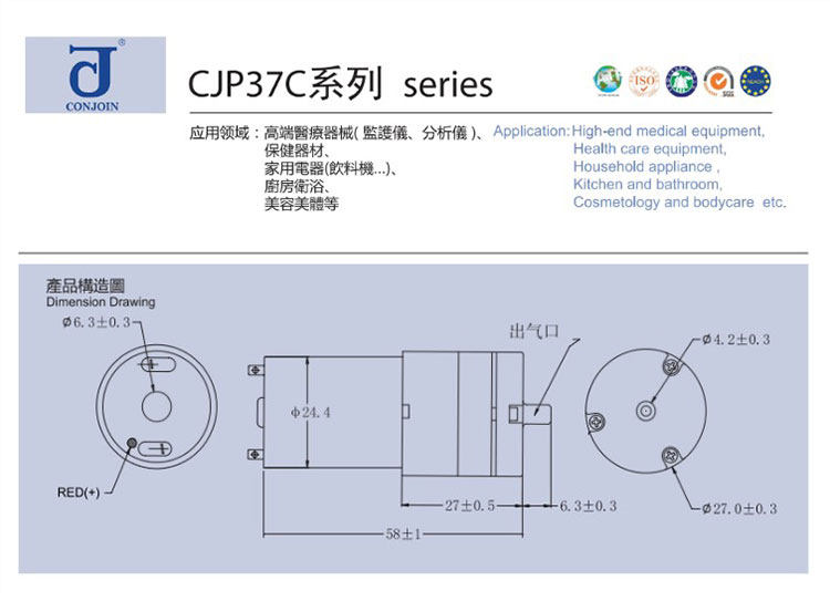 Обычно используется для медицинского оборудования с высоким уровнем моря (измеритель артериального давления, анализатор), фитнес -оборудование, массаж с ручным, кислород с аквариумом и так далее.Простой в использовании и большой воздушный поток.
