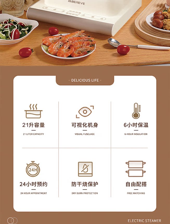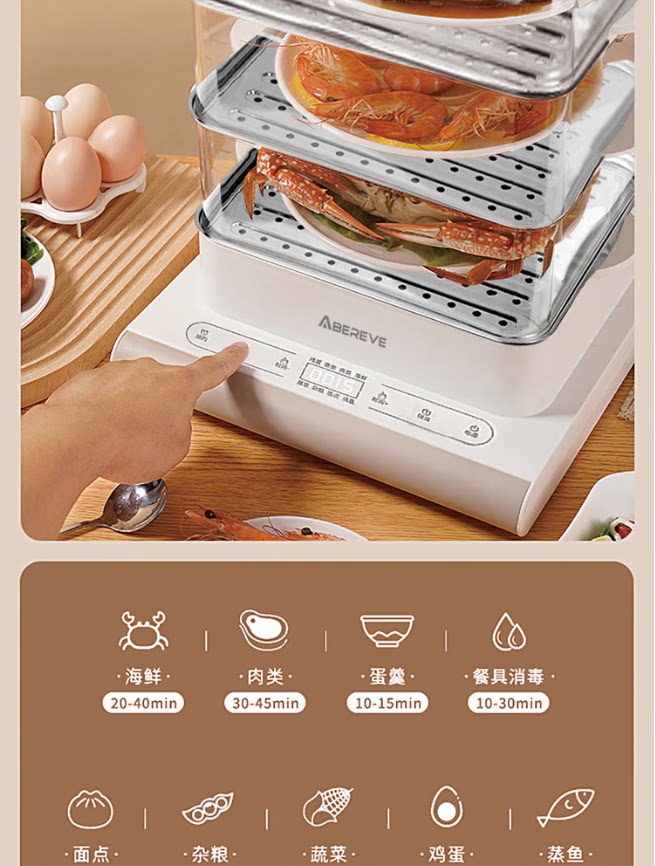 Бытовая многофункциональная трехслойная бесплатная комбинированная электрическая пароварка Abereve с круглосуточным резервированием ABL-ZG165