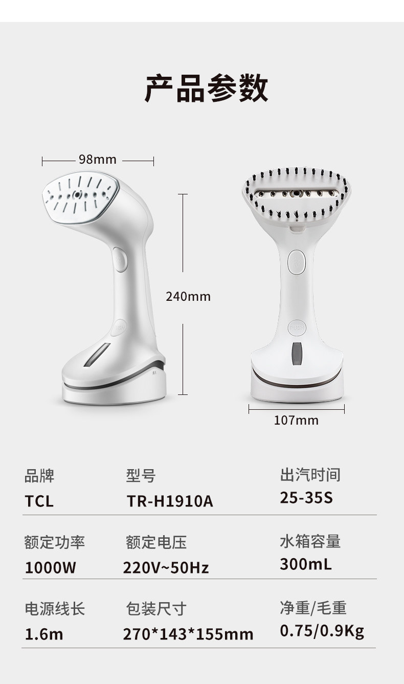TCL Vishing Marching Machine Machend Pare Electric Irong H1815E Steam щетка TR-JM0601 Небольшая гладильная машина