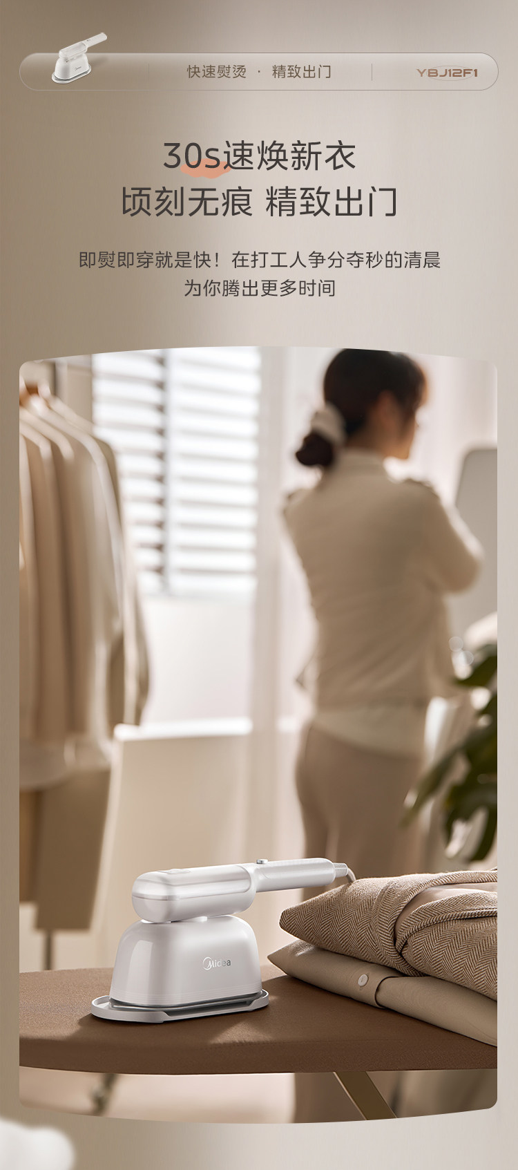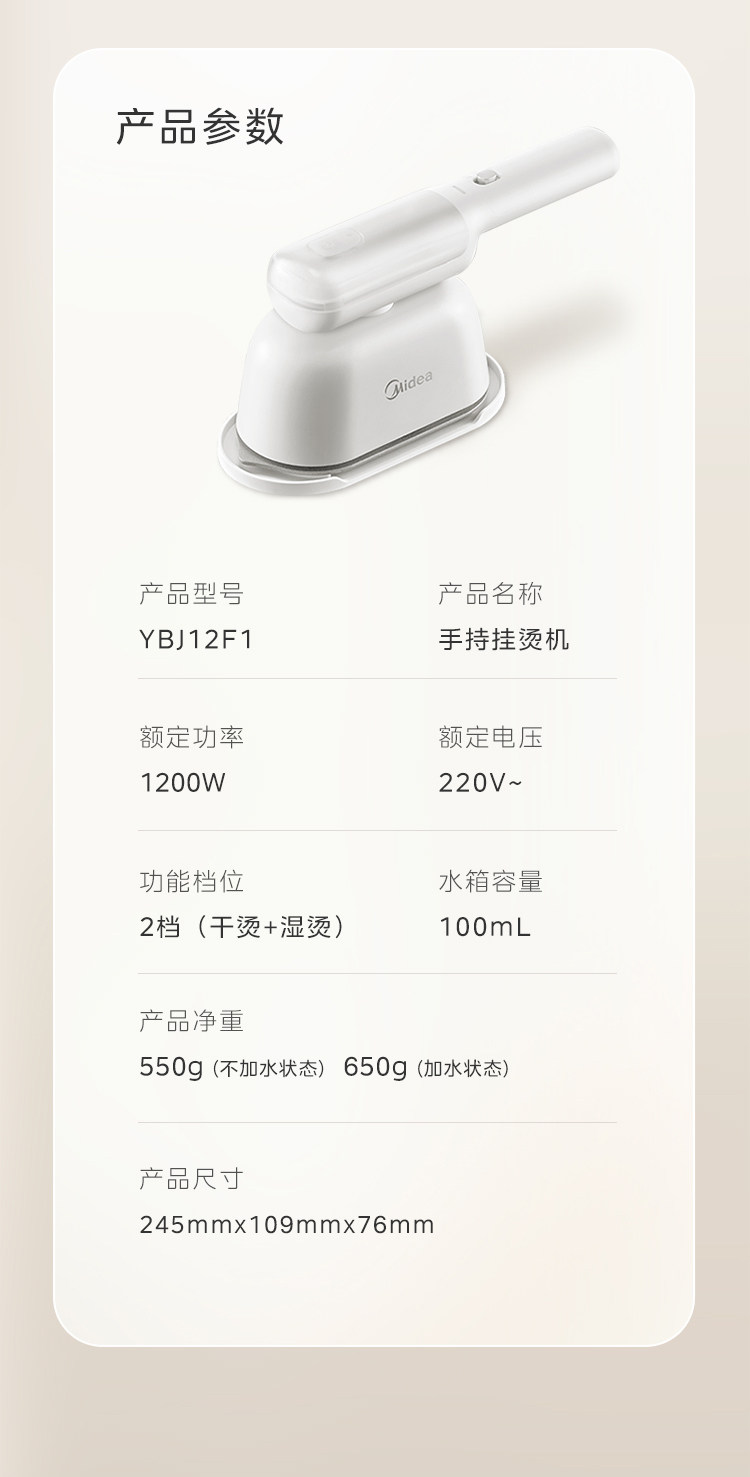 [Новые продукты] Midea's 2024 Новая портативная портативная горячая машина Большой паровой электрический утюг Дом и гладение.
