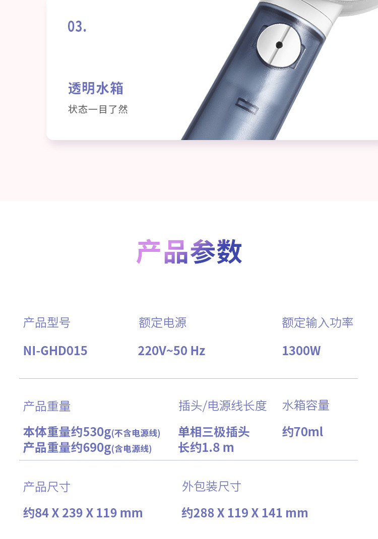 Panasonic Wanghing Hot Machine Hot Machine GHD015 Домашняя железная гладильная машина Небольшой портативный электрический снятие железа 9 Новый