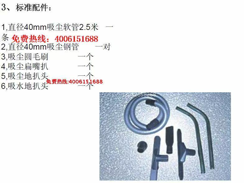 Стандартные аксессуары: 2,Вакуумная труба 40 мм в диаметре одна пара |