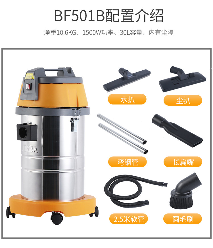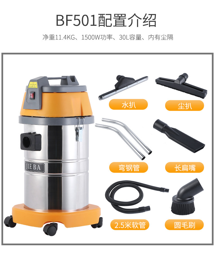 Jieba BF501 Vacuum Cleans's Home Car Pays Motating High -Dower Hotel Dry Wet Dual -Use Waterborber 30 литров