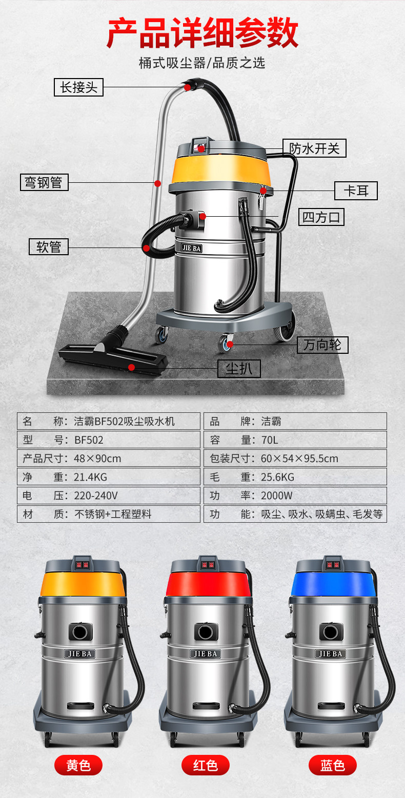 Jieba Vacuum Commenter BF502 Домашний мощный High Power 2000W Hotel Commercial 3000W Промышленное стирка автомобилей 70 литровДомохозяйство мощное высокое силовое промышленное отели промышленное отели.Jieba Vacuum Commenter BF502 Домашний мощный High Power 2000W Hotel Commercial 3000W Промышленное стирка автомобилей 70 литров