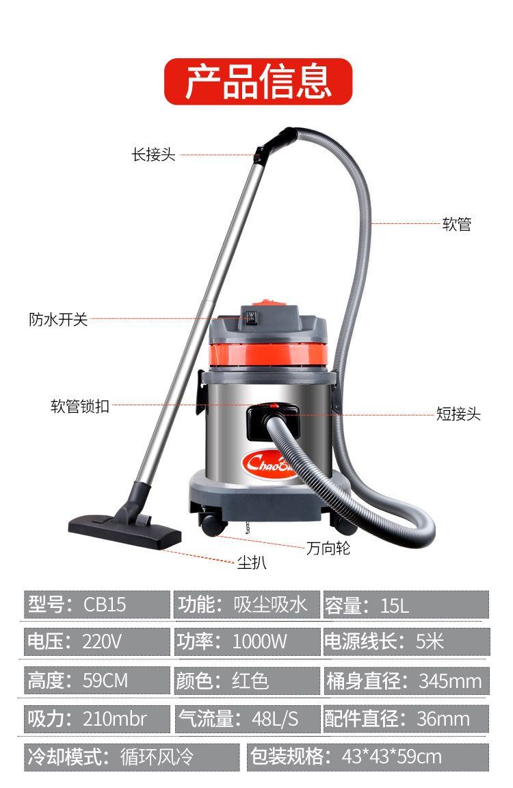 Чаобао домохозяйство небольшого вакуумного уборщика мощный офис с высокой мощностью тихий вакуумный поглотитель воды 15 -литровый CB15L