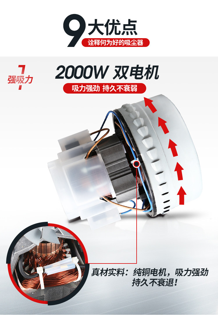 Пылесос для коммерческого использования, хорошо впитывает воду, высокая мощность, 2000W
