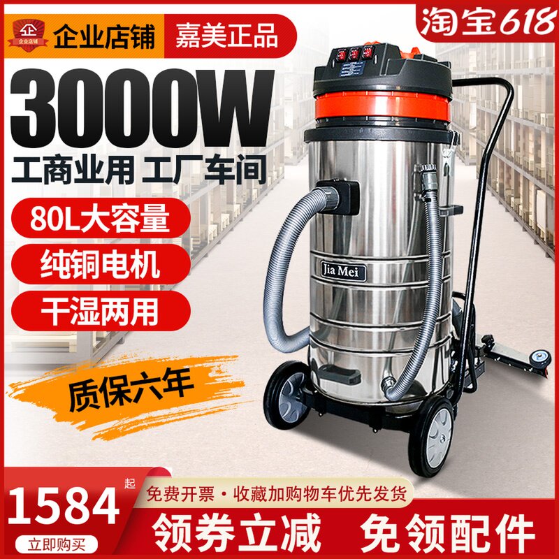 Промышленный пылесос Jiamei BF585-T мощный мощный заводской цех для всасывания пыли и воды 3000 Вт 80 л