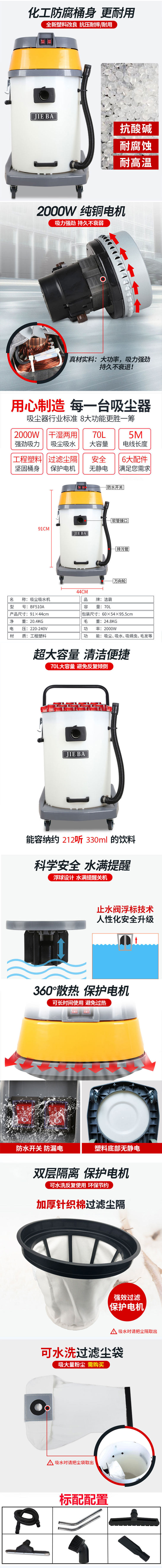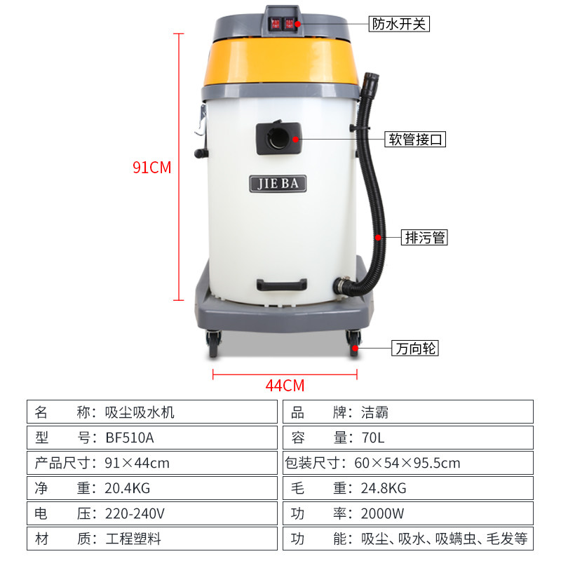 洁霸 BF510A Vacuum Cleaner Industry Мощная всасывающая вода водопоглощение водяной поглощение сухость и мокрый ствол с двойным использованием Коммерческий автомобильный магазин 70L