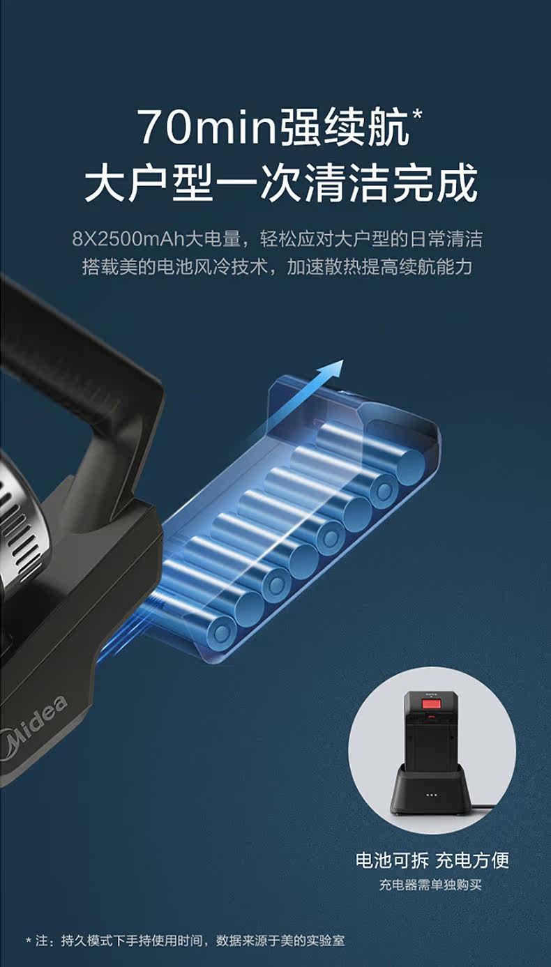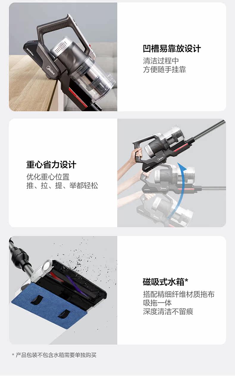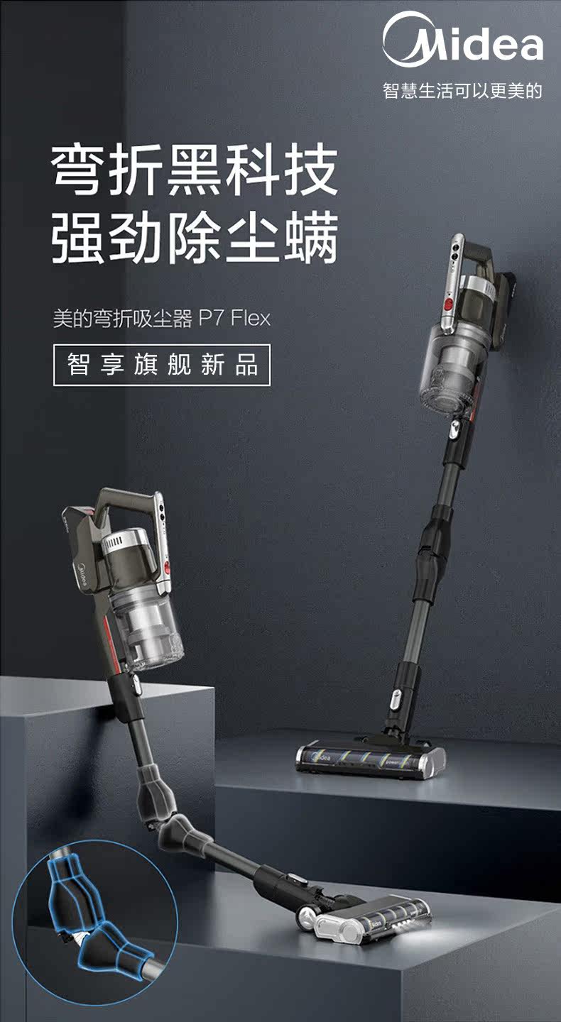 Домашнее беспроводное портативное вакуумное очиститель для дома Midea для удаления клещей и поглощения мощности, чтобы сгибать вакуумную швабру All -In -One P7