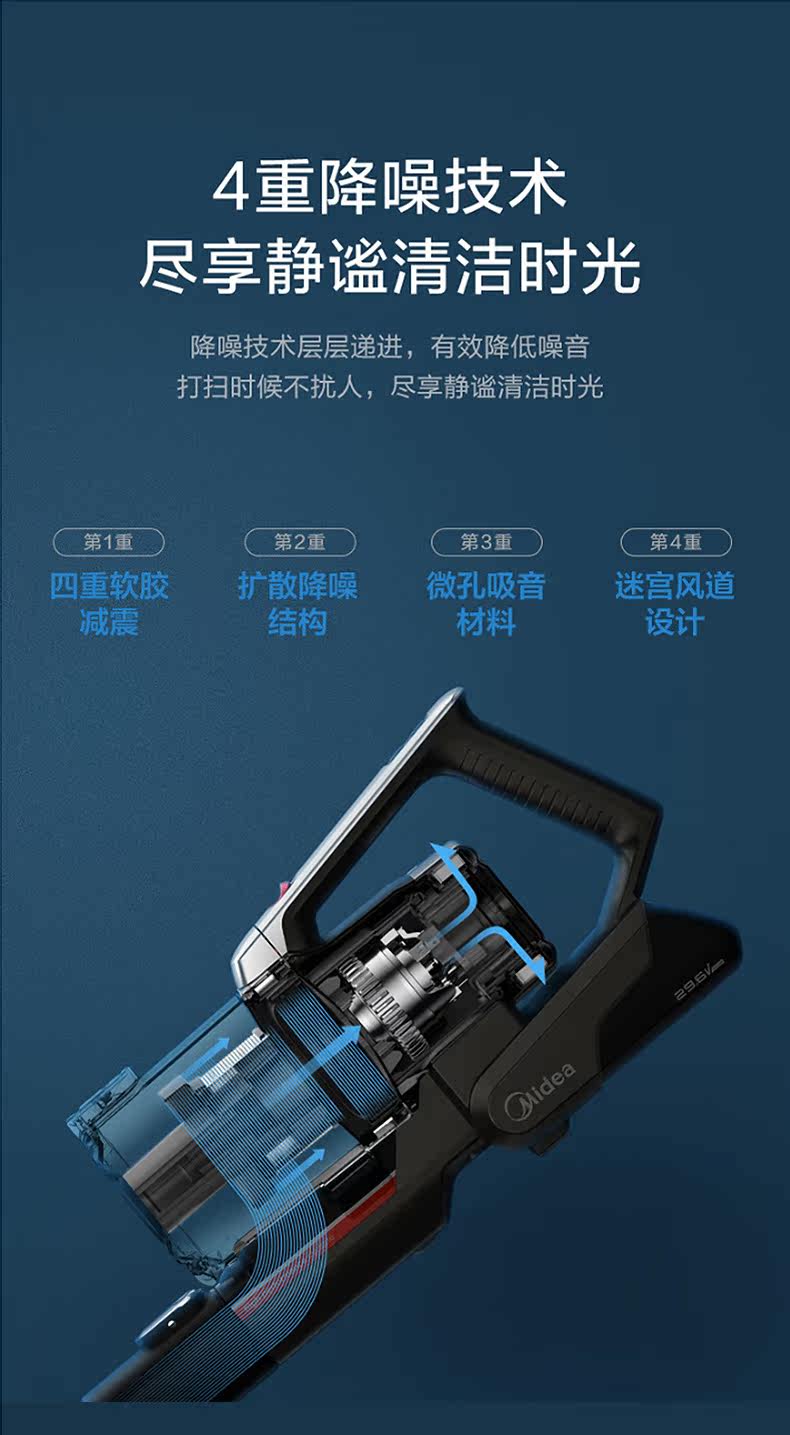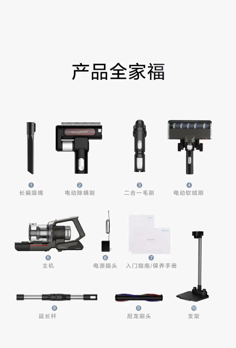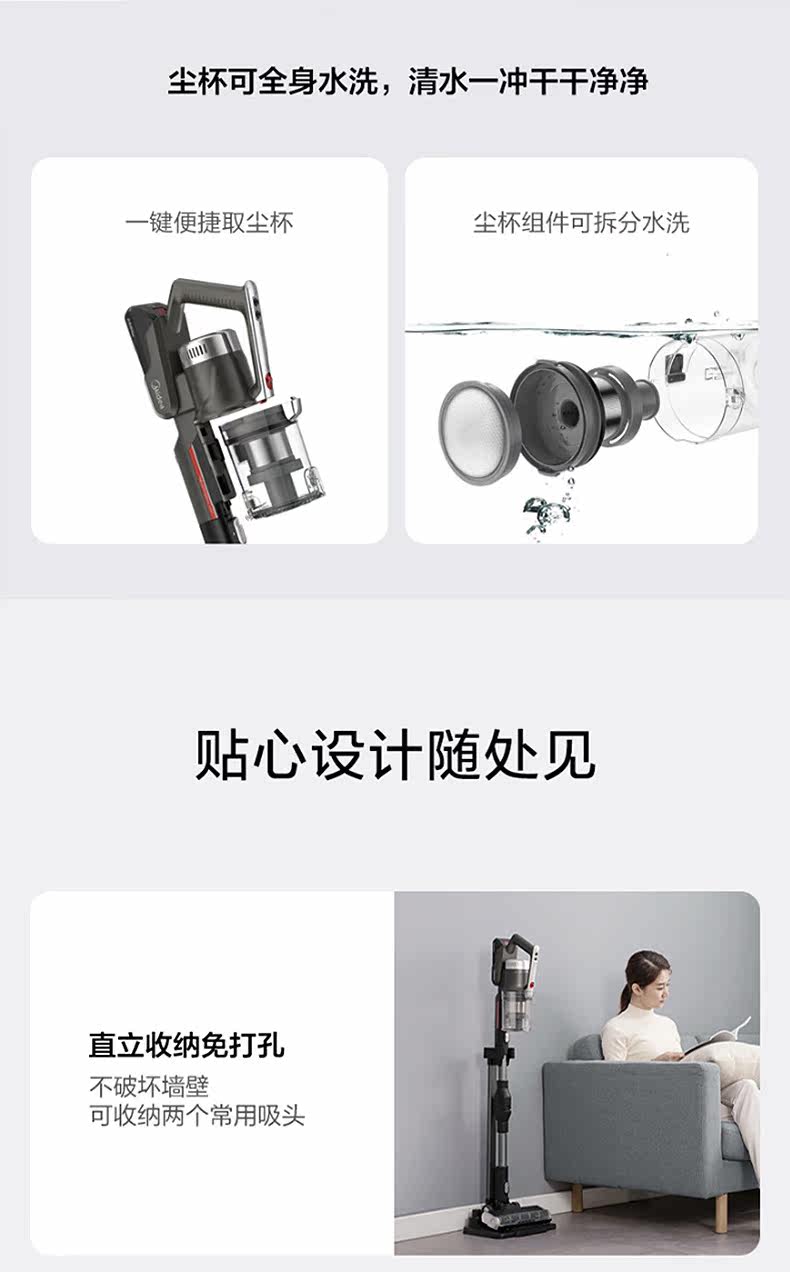 Домашнее беспроводное портативное вакуумное очиститель для дома Midea для удаления клещей и поглощения мощности, чтобы сгибать вакуумную швабру All -In -One P7
