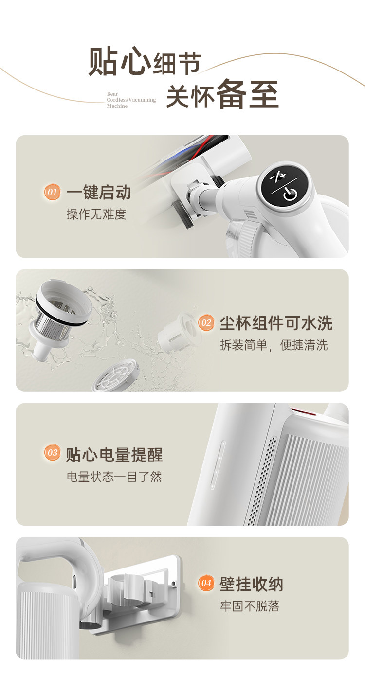 Беспроводной пылесос Bear, кошачья шерсть, собачья шерсть, ручной бытовой легкий большой пылесос для уборки дома, большой всасывающий пылесос для удаления клещей