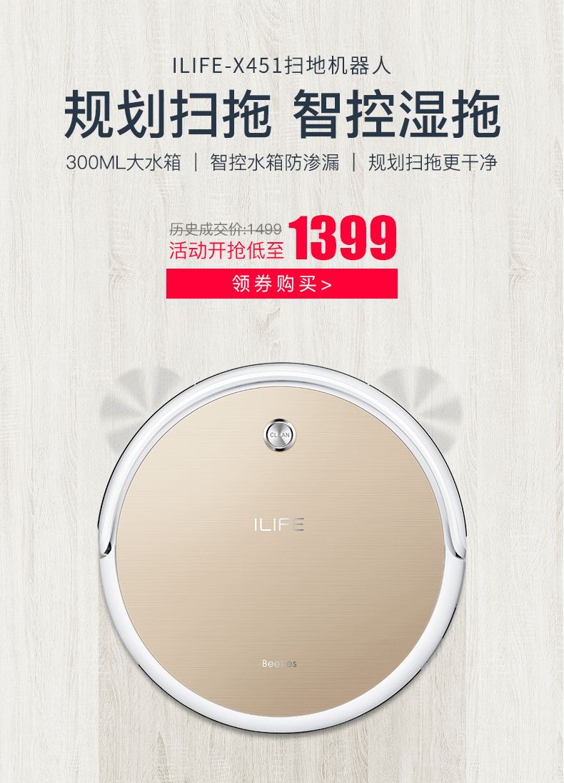 Ilife Zhiyi X451 Сканирующий робот Умный дом Полный автоматический вакуумный чистящий