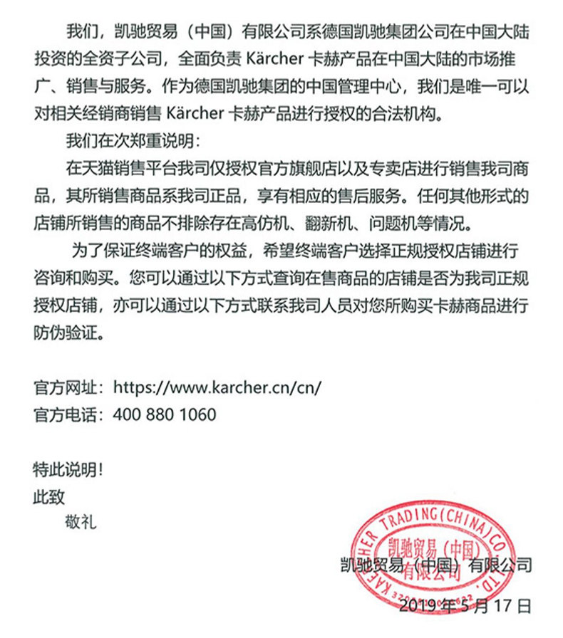 Продавец:karcher卡赫米润专卖店