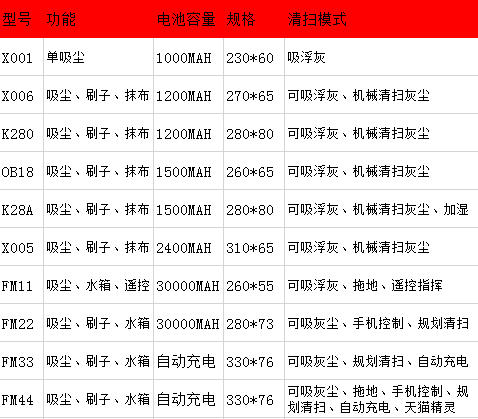 | Цвет: | X001 (единая всасывающая пыль) не подходит для домашнего использования, X006 (Suck Sweep), OB18 (сосание), K28A (подметающий, спрей), X005 (подметающий), FM11 (резервуар для воды, пульт дистанционного управления), FM22 (планирование маршрута, управление мобильным телефоном), FM33 (автоматическая перезарядка, планирование маршрута), FM44 (планирование, ручное управление, резервуар для воды, дистанционное управление), OB11 (планирование, резервуар для воды, пульт дистанционного управления) |