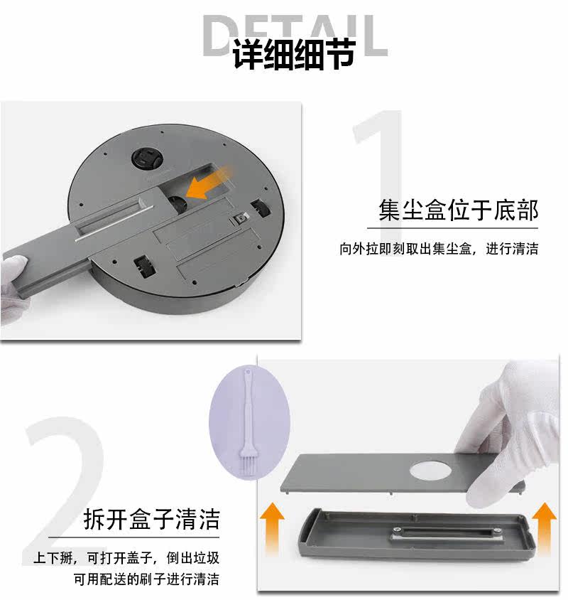 Функция продукта: встроенная литиевая батарея, зарядка, срок службы батареи составляет 120-150 минут, кнопка световой переключения, волосы адсорб-пыли, автоматическое направление изменения и т. Д.Напоминание: при столкновении с препятствиями оно повернутся и полагается на дно к адсорбирующей грязи, пыли, волосам собак и волосам напольного уровня.