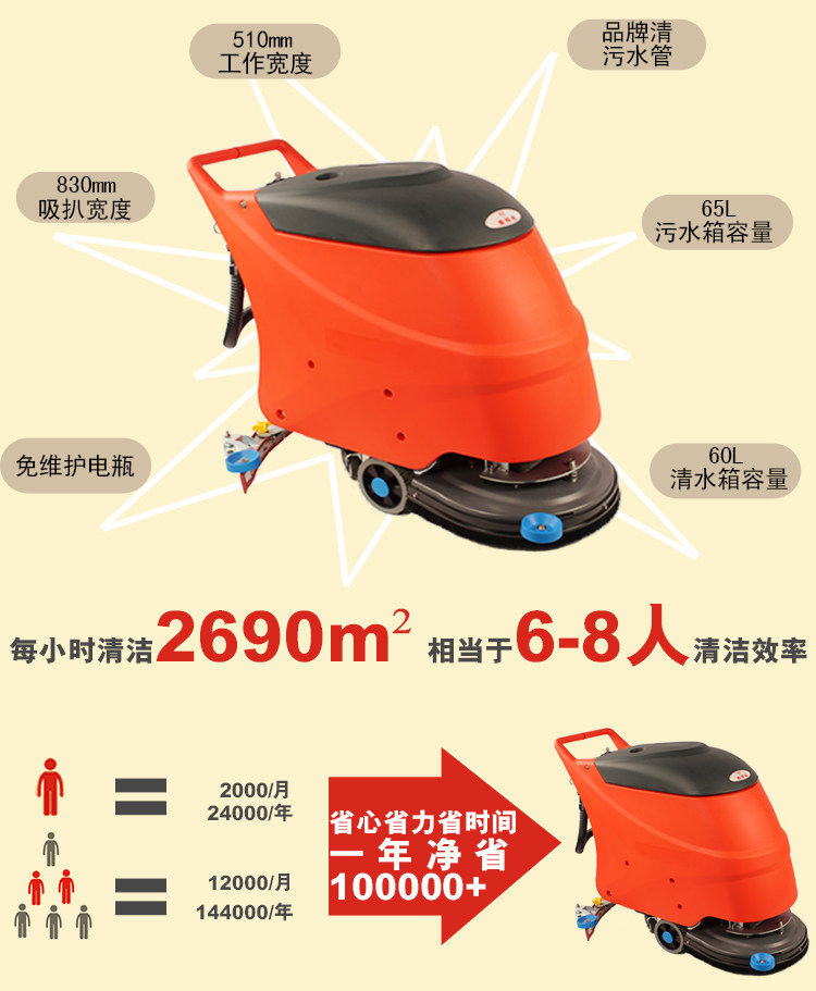 Yibaiyi Industrial Push -тип, промывая локомотив магазин коммерческий дорожный фабричный очистка с электрическим назем