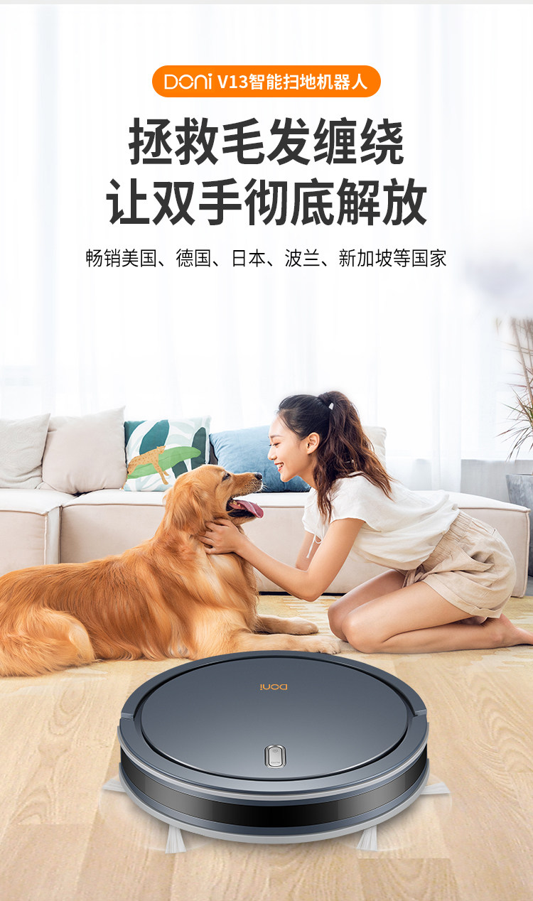 Широкий робот V13 Smart Home Checking и Drag Motor Comleder, чтобы сосать маленькие камни
