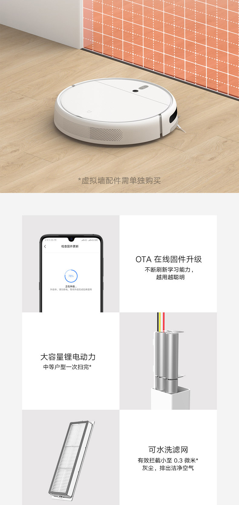 Семейство Xiaomi Mi Checking Robot 1c Smart Home Full автоматически пылесос Sweekebing All -In -Marling Clear