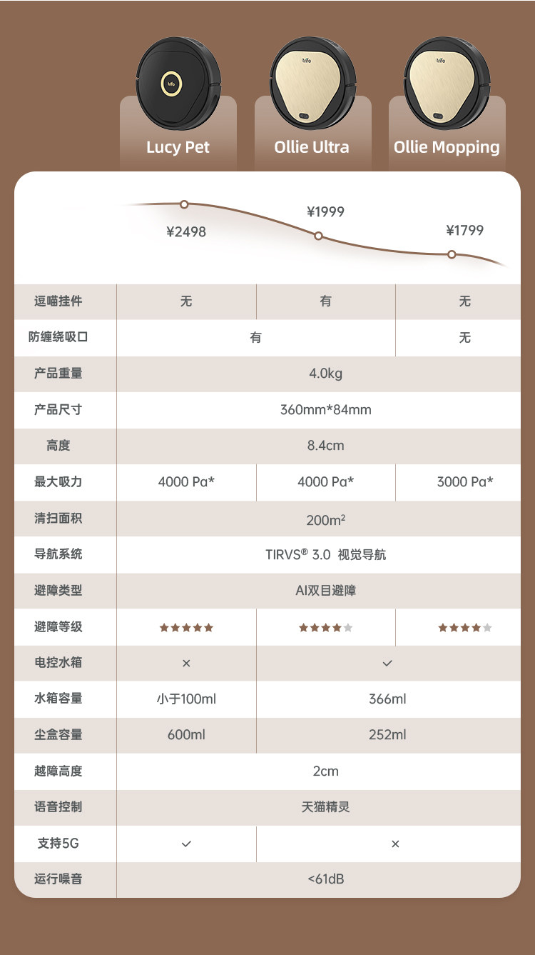 Trifo Funlei Ollie Home Intelligent Robot не обертывает домашних животных с подметающими волосами и перетаскивает машину для подметания на полу