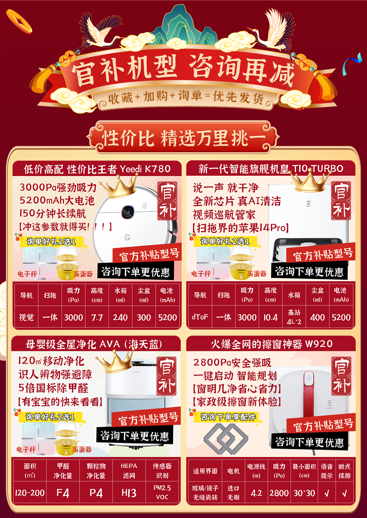 | Цвет: | Yeedi K10 【Автоматическое возвращение мытья ткань подметает и перетаскивает】, Yeedi K780 [Большое всасывание длительное время автономной затраты -Эффективная король], T10 Turbo [нет ни одного из флагманов -затрат], T10 Omni [Всемогущий автоматический возврат к коллекции пыли], Yeedi K720 【кредитование и тонкое симпатичное тело 5,7 см】, Yeedi K781+ 【Автоматический сбор пыли на протяжении всего процесса 0 Контакт】, T9 Max [Performance Monster Single King] |
