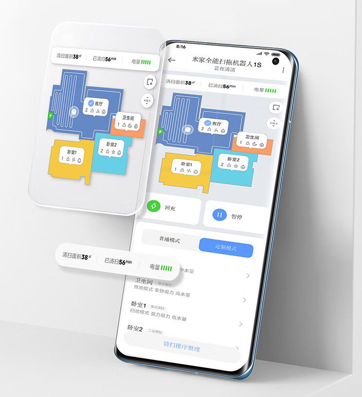 Mijia xiaomi Все -крутящий робот 1S Широкий пол, перетаскивание, сушка, автоматическая очистка, сбор пыли