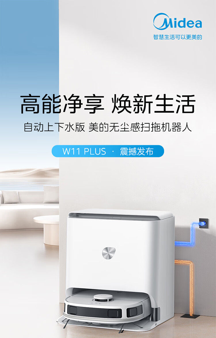 Широкий робот -робот Midea W11 Plus Автоматический верхний и нижний сушка воды, сушка и перетаскивание