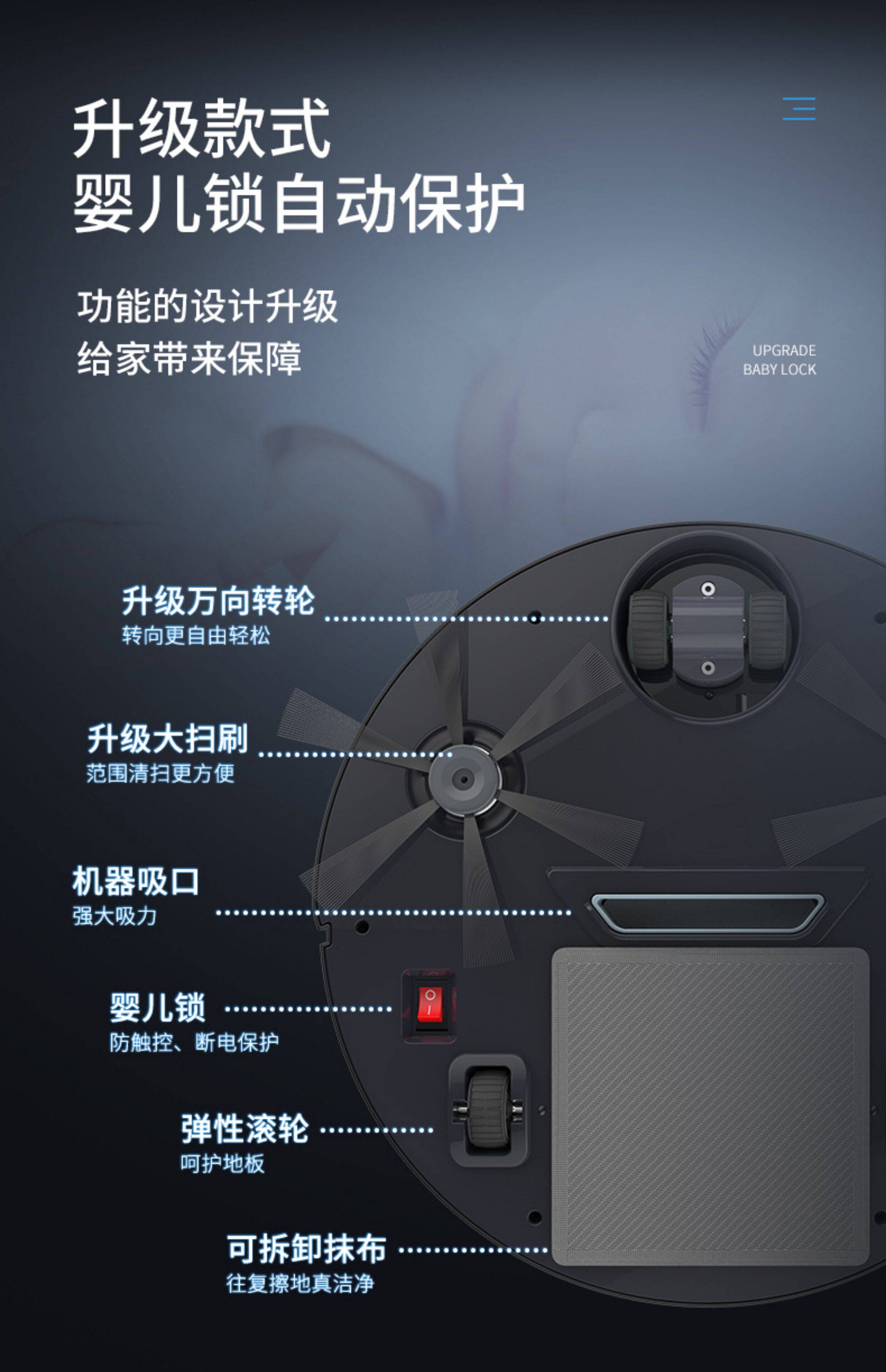 静飞 Подметающий робот эффективно очищает и удаляет волосы, супервсасывание, высокая мощность, голосовое управление, не требует мытья полов.